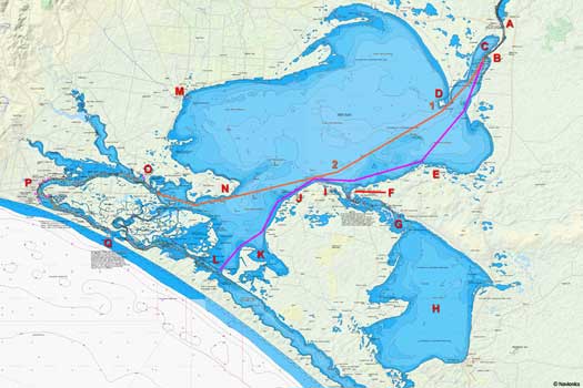There are two main tracks across the lake, either directly to Goolwa via crossing to the Sturt Peninsula or to follow the eastern / southern shorelines to Tauwitchere Barrage. The latter is the safest and depending on conditions you can cut across one or more bays to reduce the distance paddled.