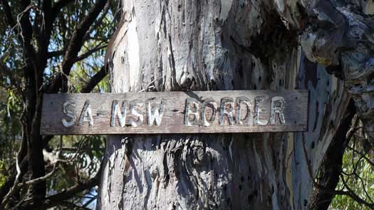 The VIC border is 11 km downstream of the NSW border. This particular anomaly between the two borders is due to errors when first surveyed resulting in the VIC-SA border being 4 km west of where it should have been drawn.