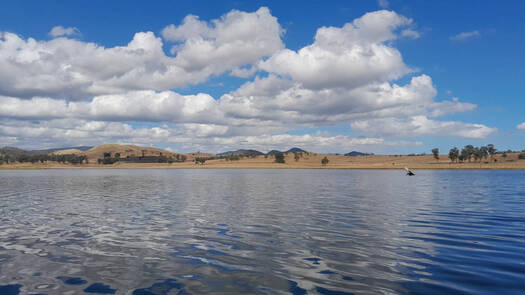 The dam is nestled in the forested foothills, with farmland around most of the foreshore. The main exception being the coves around Wyangy Creek that are mostly forested apart from the cleared private camping areas.